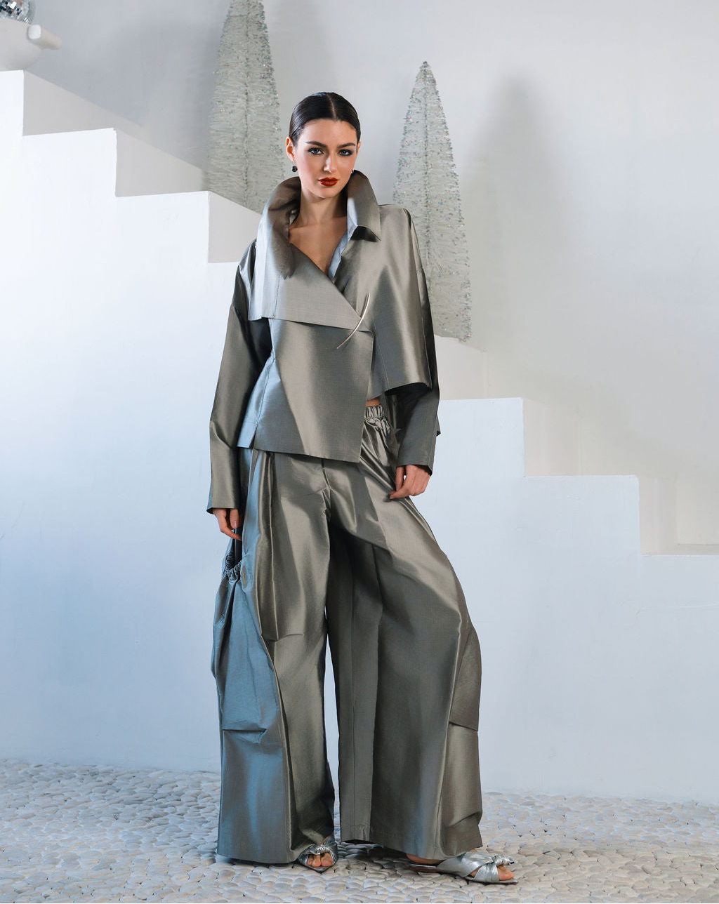 Holiday Dupioni Silk Cropped Asymmetrical Jacket