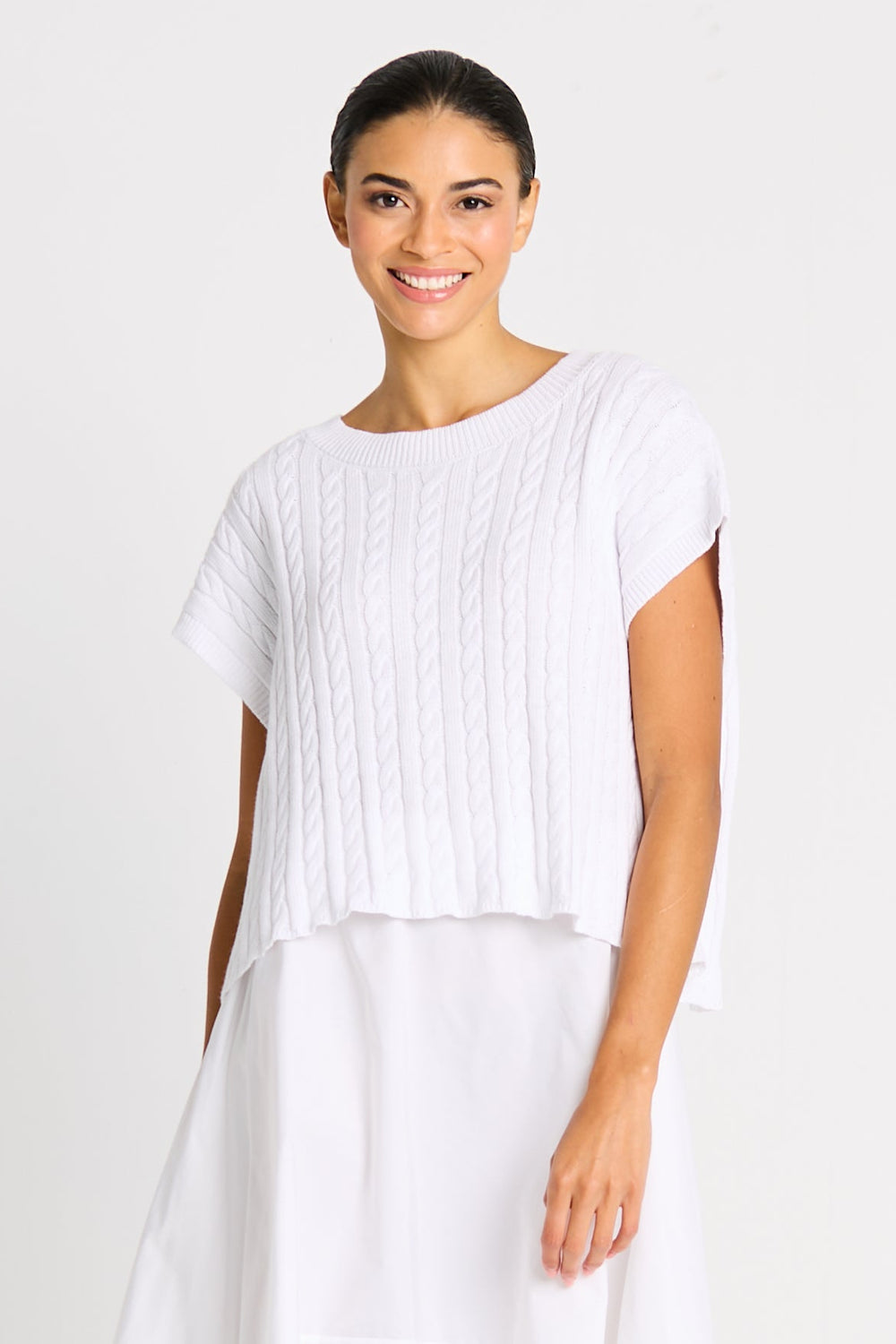 Pima Cotton Bateau Cable Knit Top