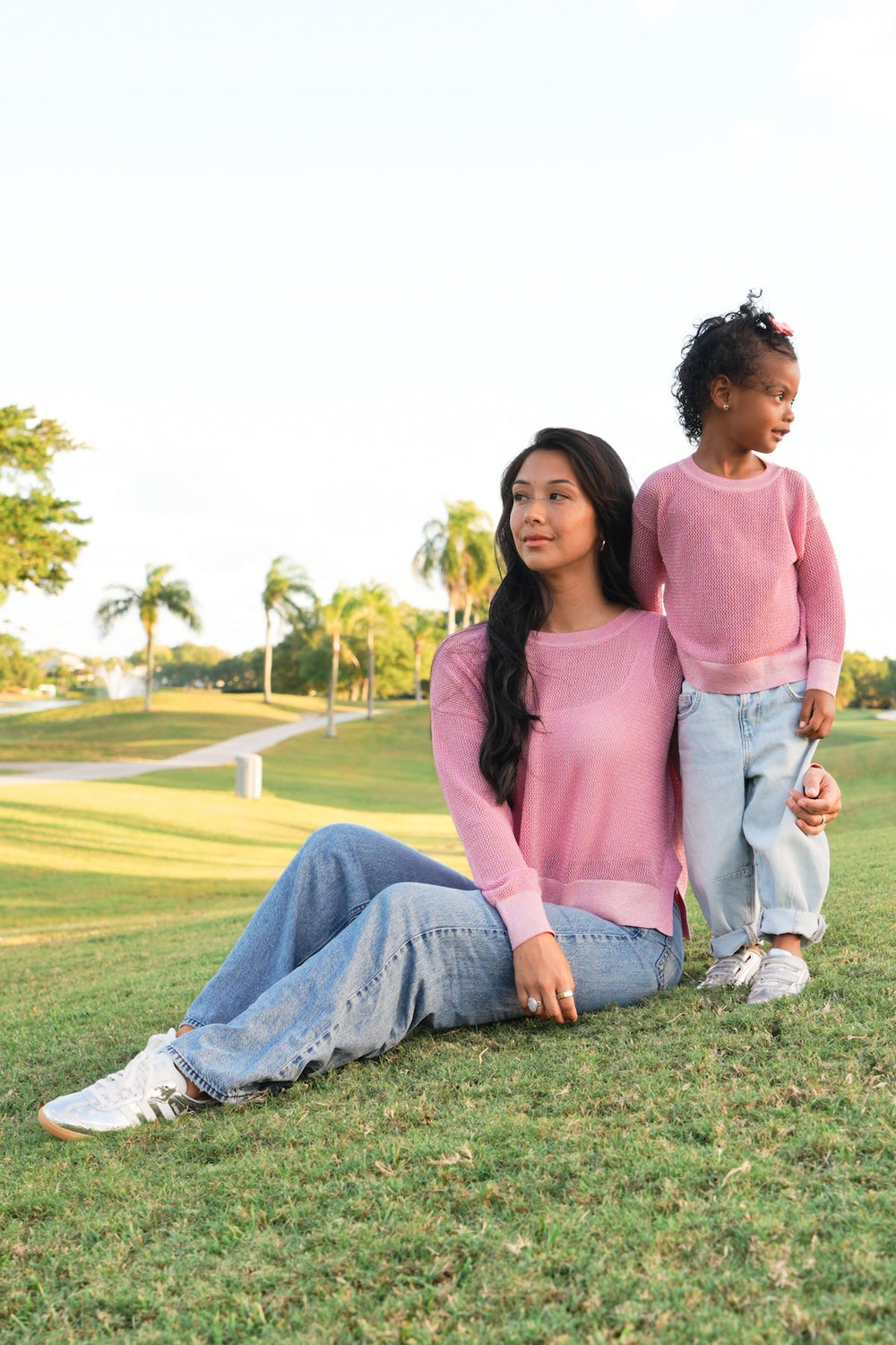 Mommy + Me Pima Cotton Metallic Mini Seed Stitch Sweater Duo