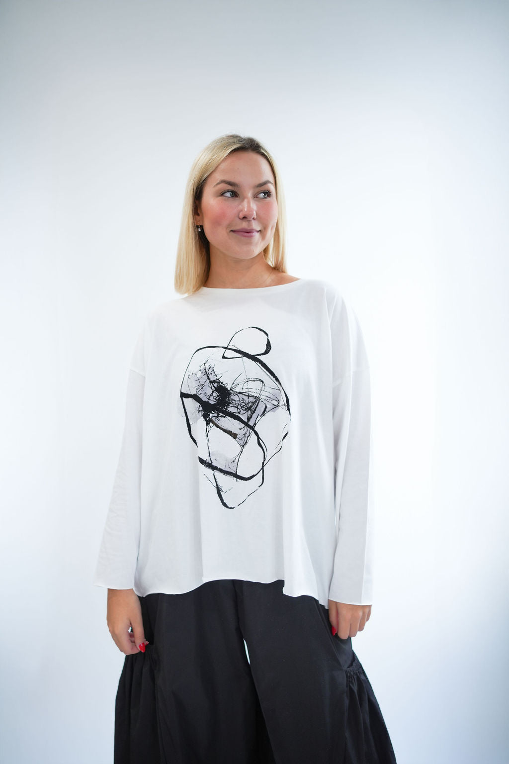 A canvas in motion. The Scribbles T brings together expressive linework and everyday elegance in one striking silhouette. Printed with an abstract, ink-like graphic, it feels spontaneous yet intentional—like a thought captured mid-air. Crafted from ultra-soft Pima cotton in a relaxed boxy cut, it’s the kind of piece that turns heads quietly.