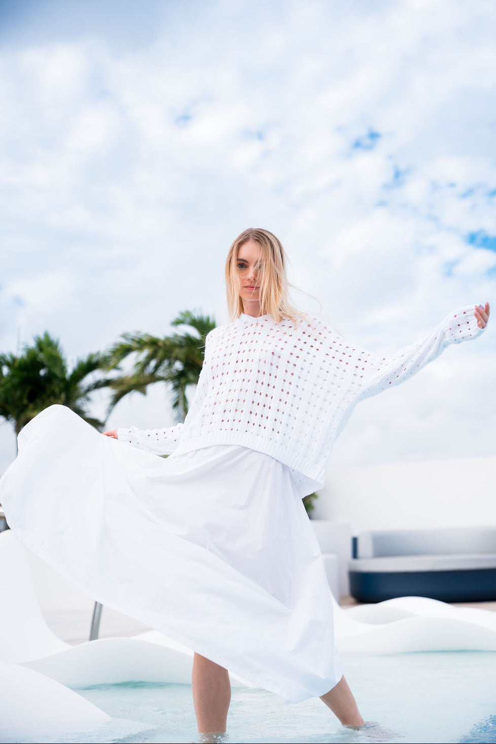 An elevated essential designed for modern movement. This architectural pleated skirt features a sculptural yet fluid silhouette that delivers bold shape with effortless wearability. Crafted from crisp, lightweight nylon, it offers breathable comfort and a polished, contemporary finish that transitions seamlessly from day to night.