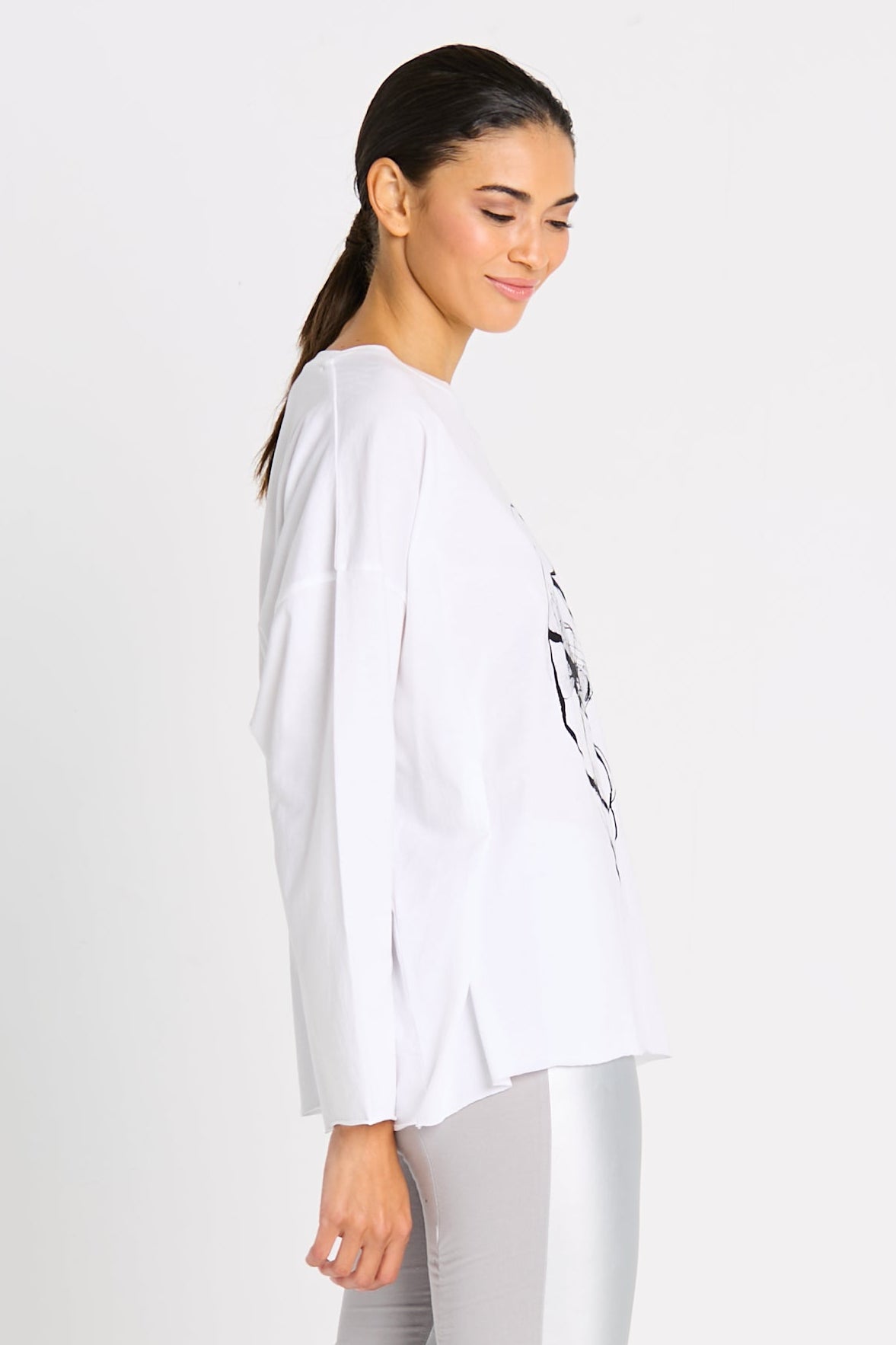 A modern essential with expressive edge, the Scribble Tee brings playful creativity to everyday dressing. Crafted from soft, breathable Pima cotton, this women’s graphic tee features an abstract, scribble-inspired print that adds spontaneous, artistic interest. The relaxed, boxy silhouette and wide neckline create an effortless drape designed for all-day comfort.