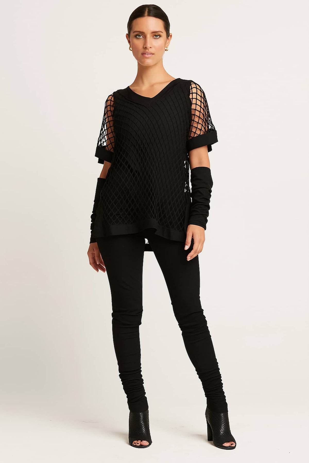 Transform your look with this striking fishnet-inspired silhouette, designed to layer effortlessly over our popular Lycra Tank. The sleek Nylon/Spandex blend offers a perfect balance of stretch, lightness, and edge. Its bold, airy design adds texture and dimension to your wardrobe, making it ideal for layering. Pair it with fitted pants for a contemporary, statement-making ensemble that’s as comfortable as it is chic.
