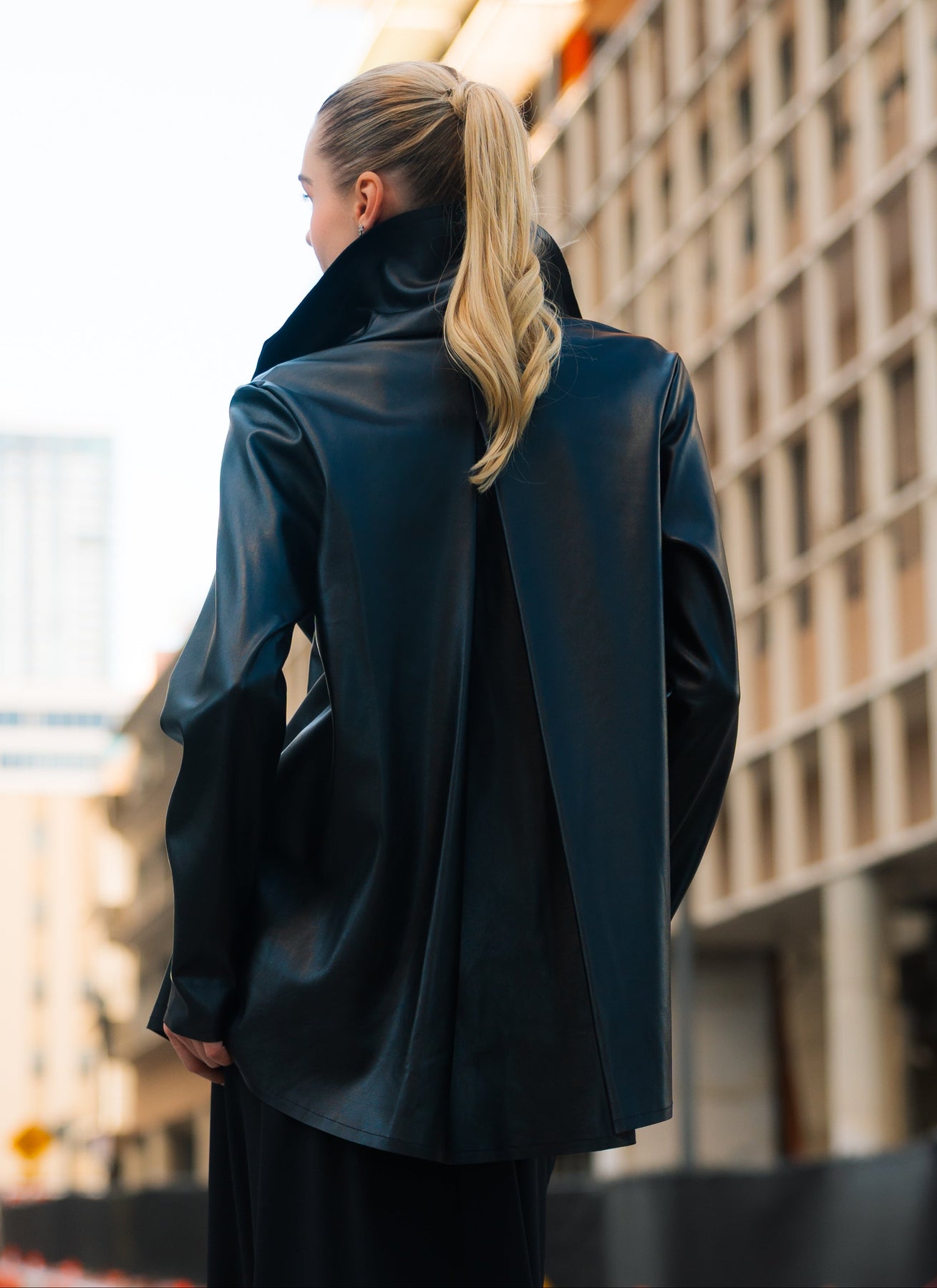 Vegan Leather Pleat Jacket